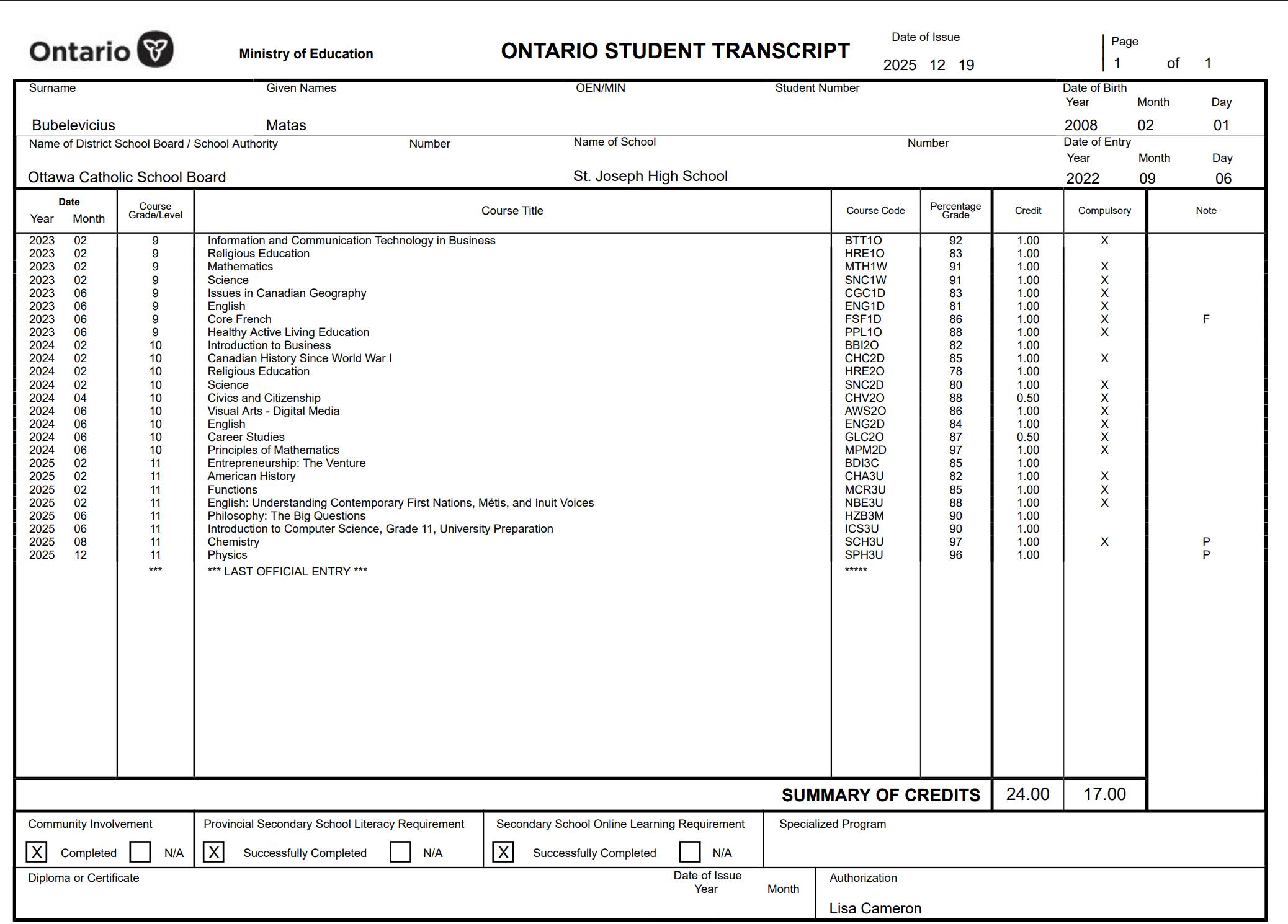 Hello Coaches, my name is Matas Bubelevicius, a 2026 Senior Defensive End and Linebacker from St. Joseph High School in Ottawa, Ontario, Canada. I’m 6’6”, 230 lbs, and play with intelligence, speed, and a non-stop motor. I take pride in being a versatile player that can impact all aspects of the game. Whether I’m setting the edge, rushing the passer, or dropping back, I am adaptable and will do whatever it takes to help my team win.